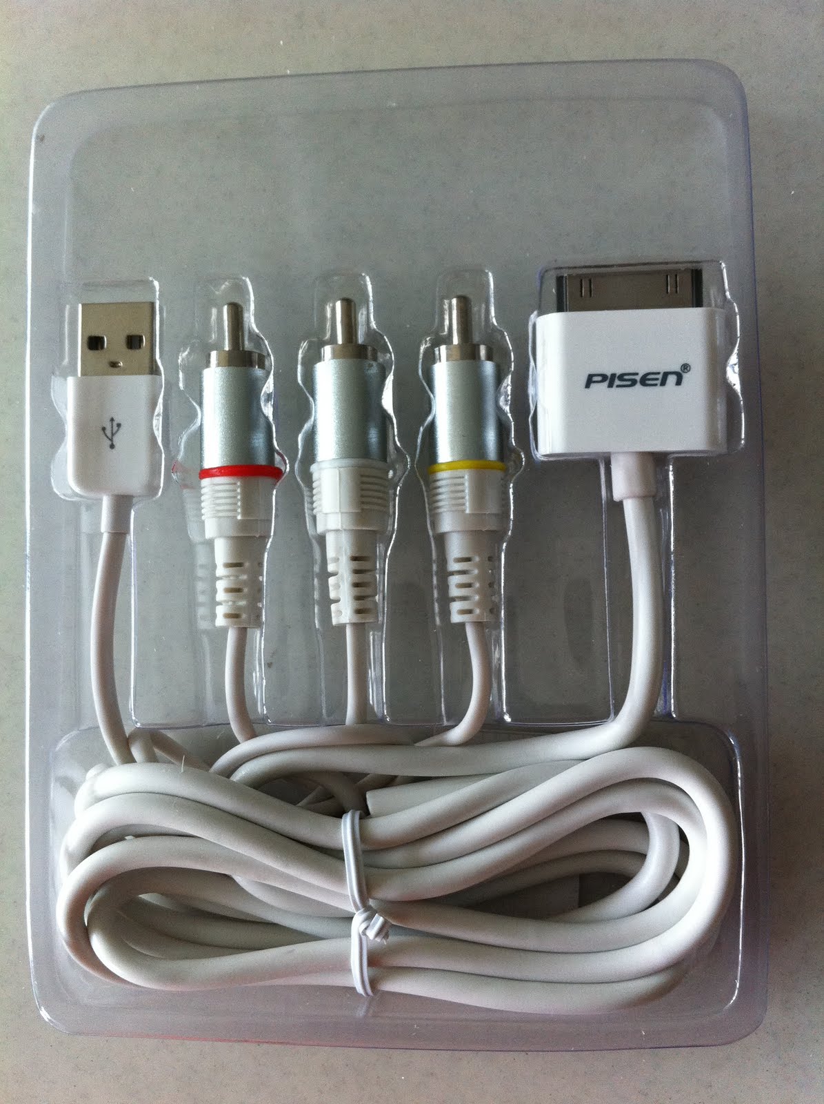 The Pisen AV cable is meant for connecting iDevices to any TV or Monitor via the older AV connectors (Red-Yellow-White). It also comes with a usb connector that works with the official Apple plug, thus allowing the iDevice to be simultaneously charging while connected to the TV. This is a critical feature because users do not have to worry about running low on battery midway through a movie. The Pisen AV cable can also be used in place of the default Apple charging cable so that users who are travelling, do not have to bring along two sets of cables.